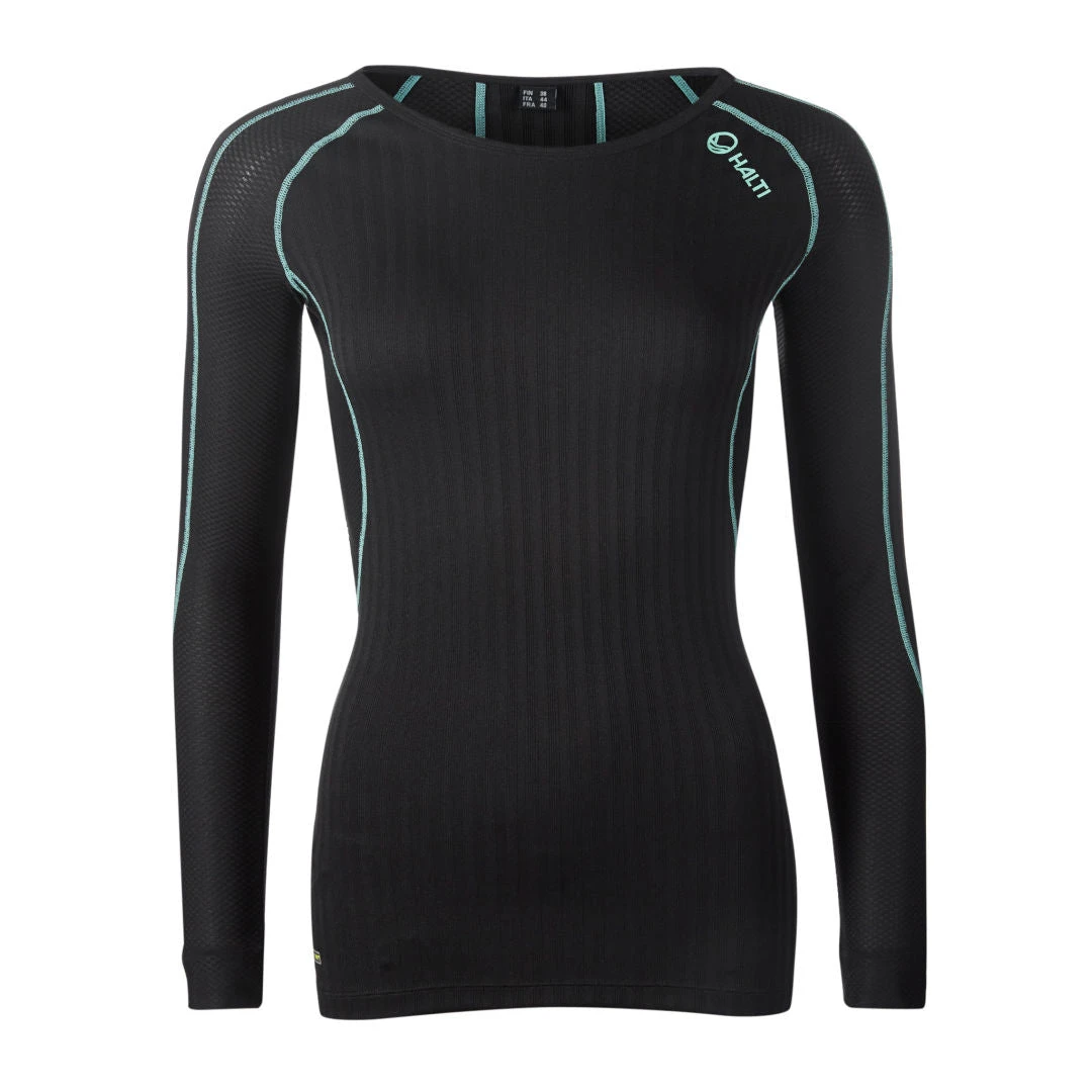 This is a women’s technical and breathable long sleeve base layer shirt for active training. The shirt has a slim fit so it is usable for all skiing but also for winter running.Â